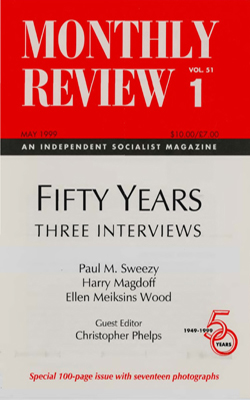在与这本杂志密切合作多年后,历史学家和政治理论批评家艾伦·梅克辛斯·伍德于1997年3月正式加入哈里·马格多夫和保罗·斯威齐,成为《每月评论》三十年来的首位新编辑。