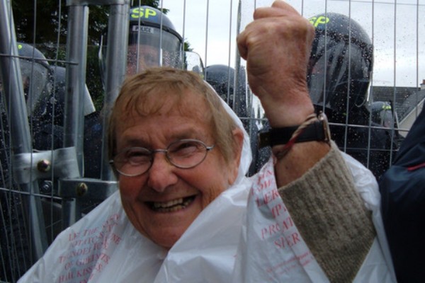 不论当国际反全球化运动在哪里开展时,她总是在那儿,无论她有没有坐上轮椅,也无论是在布拉格、佛罗伦萨还是离家更近的地方。