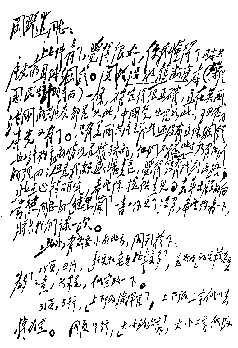 31页,5行,“上下级指挥官”,上下级三字似以去掉为宜。同页9行,“大小政治家”,大小二字似改“反动”二字为宜。同页,10行,“下层法西斯分子”,下层二字似宜去掉。同页,11行,“思想检事等”之下,似宜加上“中的积极分子”等字。这个问题,目前宣传时期,不宜牵涉得太广泛;待将来实行时期,依照群众发动的程度,临时伸缩处理,似较有利。