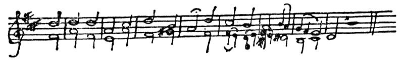 我还想告诉你,我正在谱曲,而且是谱写赞美诗。但是这件事可难了:节拍、升半音以及和声带来很多麻烦。到目前为止,我的进展还不大,但还是想给你看一段样品。这是赞美诗的前两行:“我们的上帝,强大的堡垒。”[注:这是马丁·路德的教堂赞美诗的头两行。——编者注]