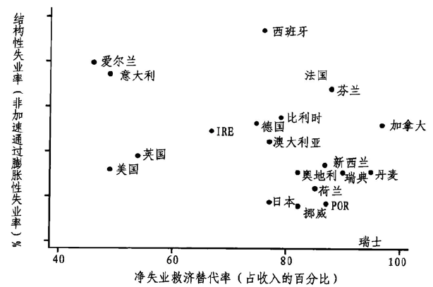 图2.5 结构性失业与失业救济金(1999)