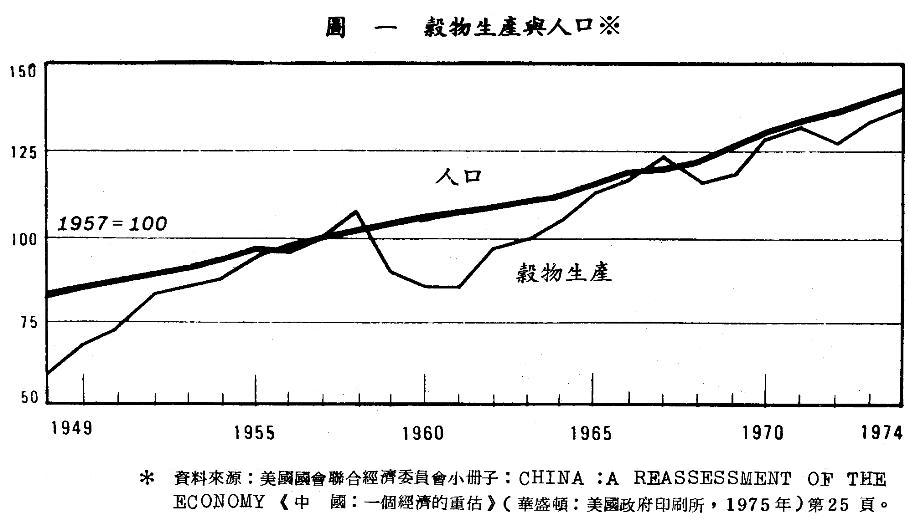 值得注意的是,按人口计算的粮食产量,在一九五五至五六年达到了最高峯,以后就下跌,直到一九七四年以后才超过过去的高峯。