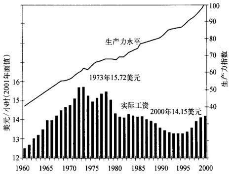 图1.6:对劳工的打击:美国实际工资与生产力,1960~2000