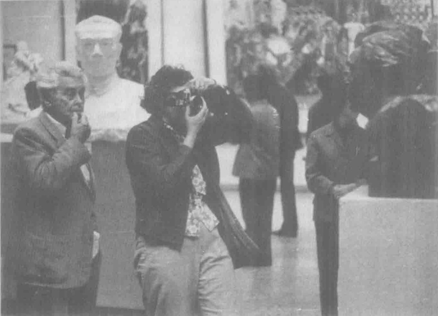 1980年前后,北京某次展览中,伊文思在司徒兆光为其所做的塑像前