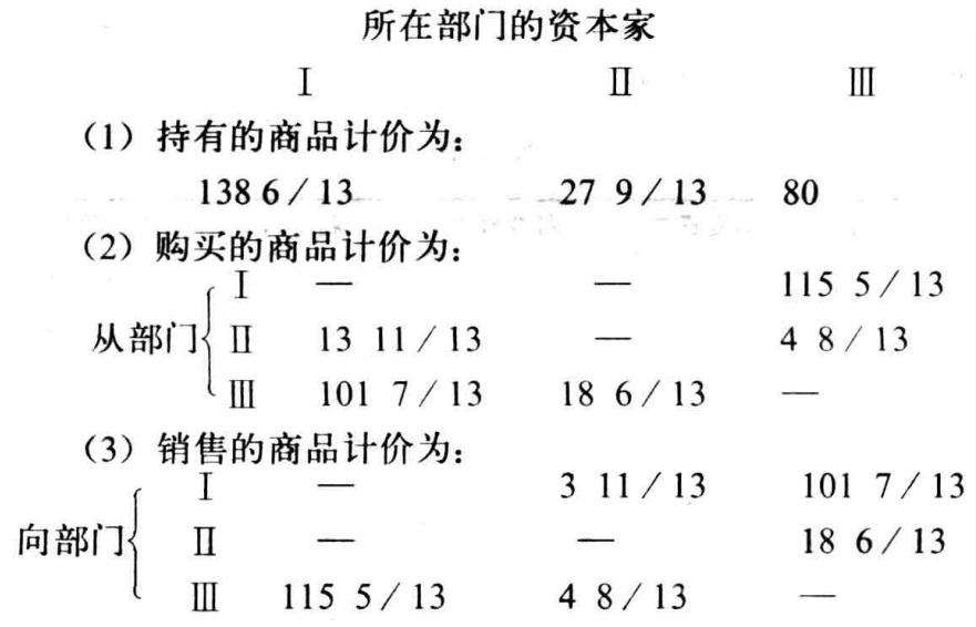 无论如何,数量q′是部门Ⅰ和部门Ⅲ联合资本的有机构成的表现。所以,利润率之独立于部门Ⅰ和部门Ⅲ的资本有机构成,在部门Ⅱ没有不变资本的场合下,根本不意味着其他两个部门的资本有机构成可以无限制地高。事情的真实情况更确切地是,如果不变资本在这些部门中的份额,数量q′,超过了一定限度,利润率的均等化就成为不可能。